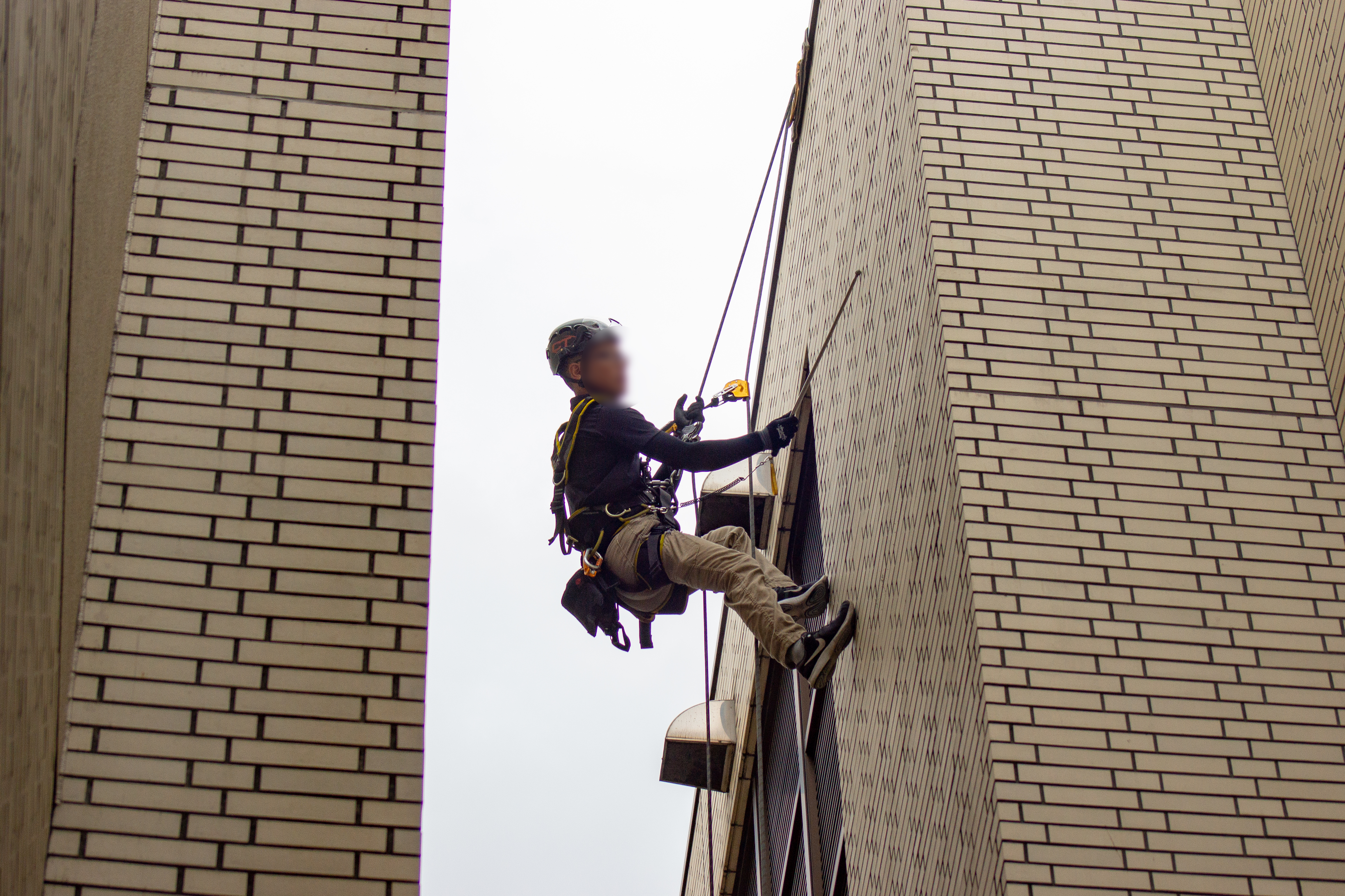 高所作業車 仮設足場を組んで調査するよりも安価でおこなえます。 (条件により異なる場合があります) チェアーゴンドラ 高所作業車が設置困難な場所では、チェアーゴンドラで調査をおこないます。 ロープアクセス(ロープブランコ) チェアーゴンドラの吊りもとが取れない屋上や屋根はロープアクセスで対応いたします。 ロープアクセス(ブランコ)の調査状況動画です。 目視調査 外壁タイル、外壁モルタルのひび割れ、欠損の発生状況を調査します。。 望遠レンズ ドローンによる調査 足場を使用せず、地上面から望遠レンズカメラやドローンを使って劣化調査します。 最新の高画質カメラを使用することによって望遠でも画質の劣化がありません。 >使用カメラ SONY αシリーズ 望遠800㎜ >使用ドローン DJI Mavic 3 >使用ドローン(赤外線カメラ搭載)DJI Mavic Enterpriseシリーズ ↑ マンション9階の外壁タイル 肉眼では確認するのが困難 ↓ 望遠レンズを使用して剥落しそうなタイルを確認できました! 赤外線法 地上からの赤外線調査や、赤外線カメラ搭載のドローンを活用し、モルタル浮きやタイル浮きの劣化調査をします。 その他 ゴンドラ、高所作業車が設置困難な場所では、狭い所でも入って行くことができる 小型の高所作業車(ブームリフト)で調査をおこないます。